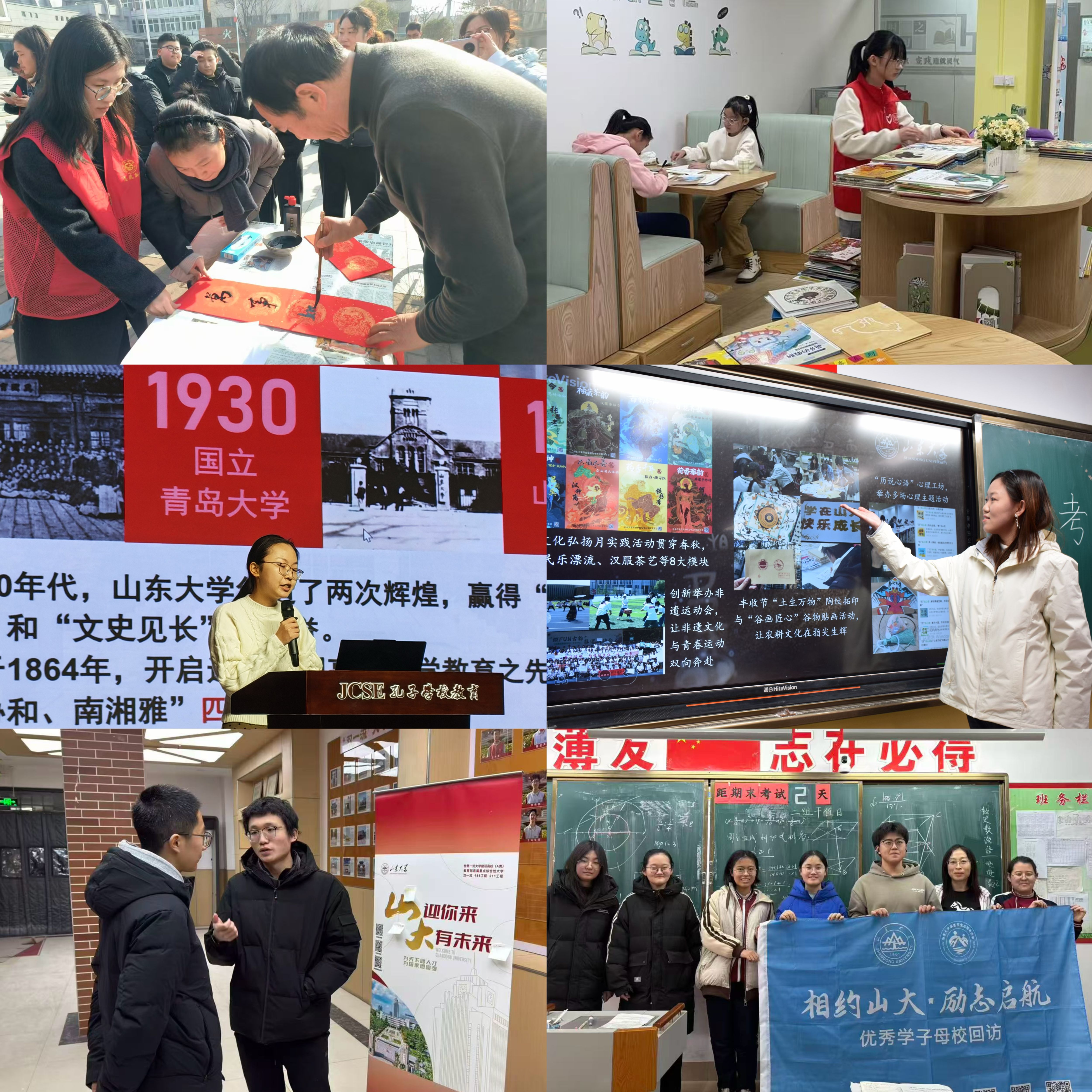 “青矜归里”队响应“返家乡”社会实践号召,前往街道党建办公室、县发展和改革局等基层单位实习,切身体悟服务人民群众、解决实际问题的重要意义。“志愿先锋”队、“拾光者”社会实践队深入基层一线,协助开展资料登记整理、政策宣传讲解、邻里关怀走访等工作,用实际行动服务居民、奉献社区。“山回守望”宣讲队等多支队伍参与寒假母校回访活动,通过宣讲会、座谈会、咨询会和科普报告等形式,介绍学校的校史校情、专业设置、招生政策等,展示山大优秀学子风采,讲好山大故事。